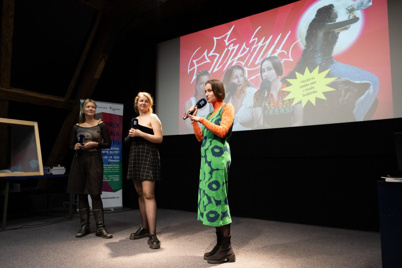 The student jury then took the floor and presented their criteria, which differed from those of the expert jury. The students placed particular emphasis on the auditory form of the podcasts, the use of narrative, and the communication of the topic. According to them, third place went to Vinohradská 12: EXTRÉM, second place to Stoupenci, and the final winner was Oh my hot for its innovative format and sound and spoken form.