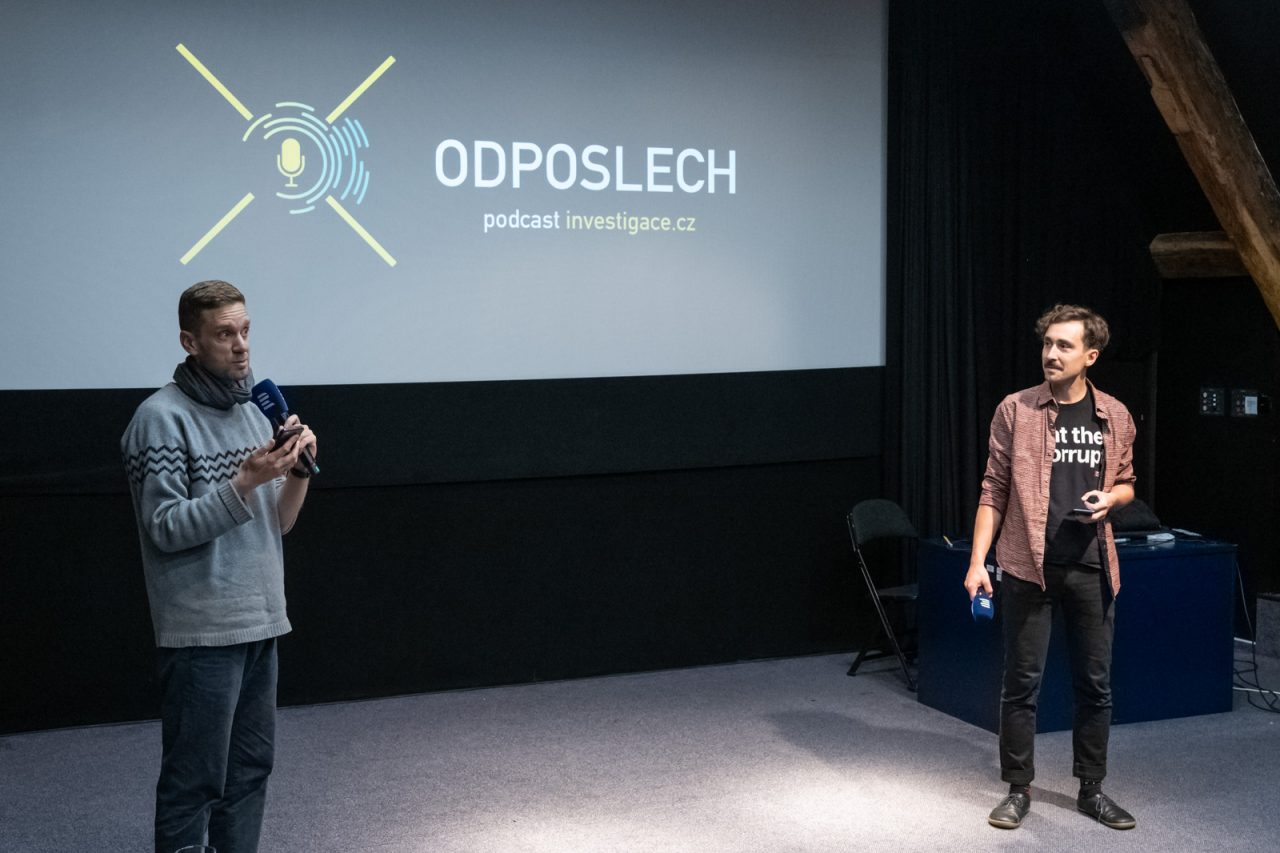 After a brief introduction of the expert jury, the first podcast Odposlech was presented by its co-creators Petr Gojda and Jiří Slavičinský. The investigative podcast addresses major international cases and is founded on a collaboration between podcasters and journalists from the investigace.cz portal. Questions from the jury focused mainly on the promotion and distribution of the podcast, as well as selection of topics.